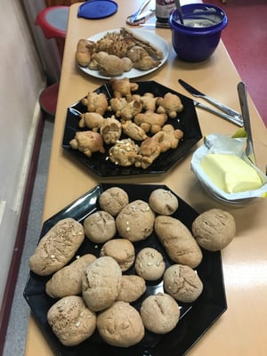 Am Dienstag, den 18.2.2020 hatten alle am Brotbacktag viel Spaß. In verschiedenen Gruppen konnten drei unterschiedliche Rezepte ausprobiert werden: Knäckebrot, Brötchen und „Brottiere“. Besonders gesund wurde der Teig durch das selbst gemahlene Dinkel- und Weizenmehl. Im Anschluss schmeckten die Köstlichkeiten bei einem gemeinsamen Frühstück - hmm, war das lecker!