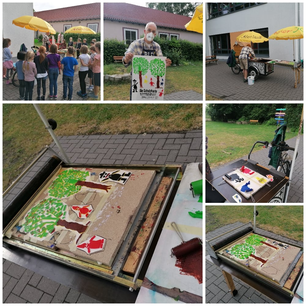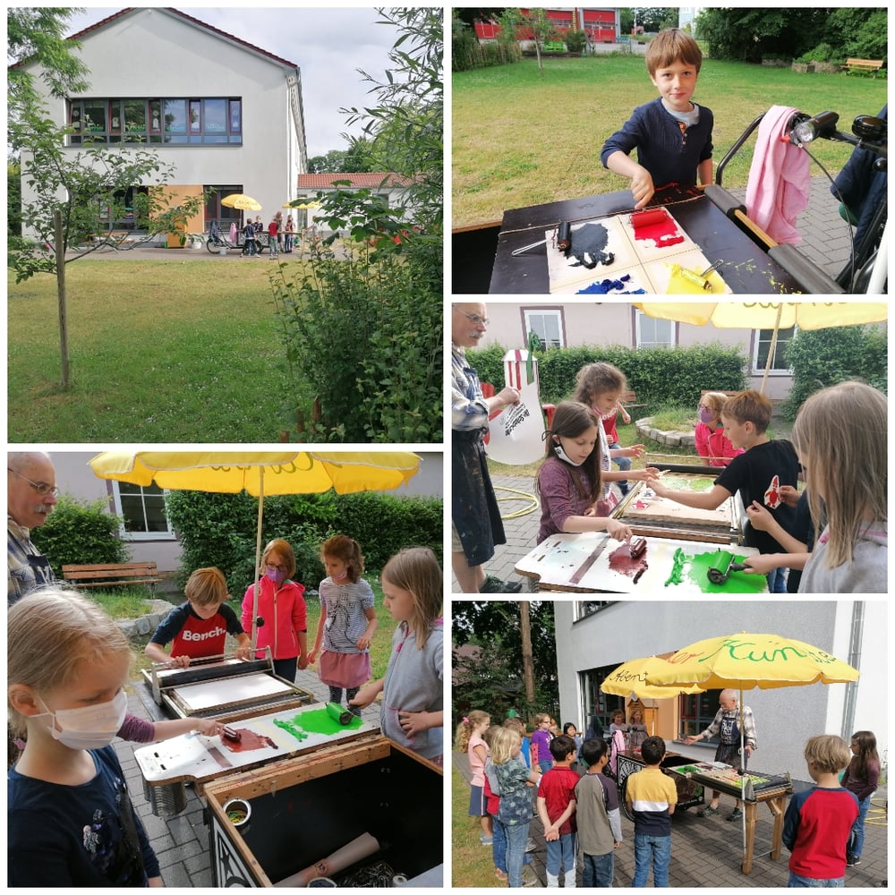Aus der Schule Theaterplakate sind fertig! Mit Begeisterung druckte die 2a heute mit Herrn Blieffert im Hortgarten die Plakate zum Einschulungsstück. Jeder durfte einmal den Druckstock einfärben und die Walze bedienen. Es war ein tolles Erlebnis. Danke, Herr Blieffert!!! tagPlaceholderTags: Plakate