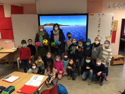 Der Förderverein der Rückertschule hat 20 Fußbälle für die Rückertkinder gekauft. Neben Softbällen mit "guter Flugbahn", wie die Viertklässler erläuterten, sind auch wetterfeste Kunststoffbälle mit dabei. Die Klassen 2a und 4? nahmen die Bälle stellvertretend für alle Rückertkinder von Hanna Sieverding und Ute Middendorp (Vorstand Förderverein) in Empfang. Es kann also wieder gekickert werden auf dem Schulhof.