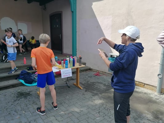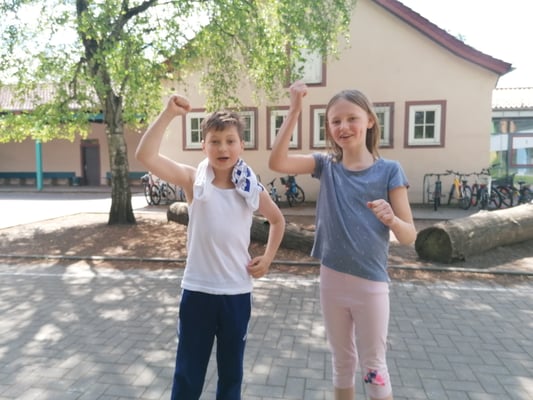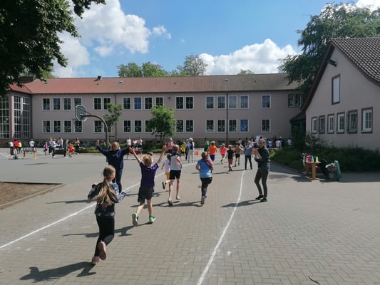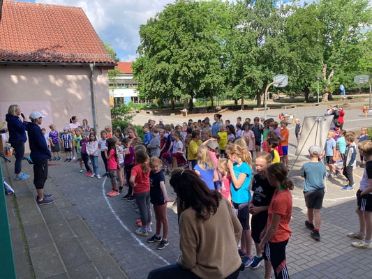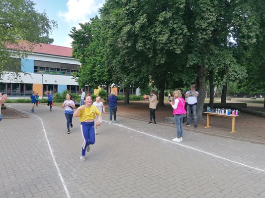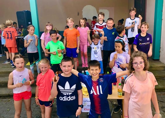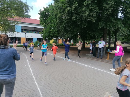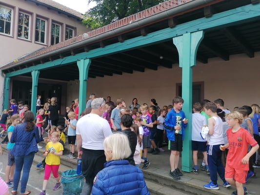 Der dritte Projekttag stand heute im Zeichen des Laufabzeichens. Bei tollem Wetter liefen die Kinder ihre Runden bei Musik und Unterstützung durch Eltern und Lehrerinnen über den Schulhof. Nach 15 Minuten konnten sich die SchülerInnen über Bronze, nach 30 Minuten über Silber und nach 60 Minuten über Gold freuen. Zur Belohnung gab es ein tolles Fitnessbuffet der Eltern. Es hat allen Beteiligten wieder riesigen Spaß gemacht!