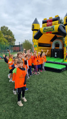 Mit viel Spaß und Bewegung genossen die Rückertschüler gemeinsam mit der Elisabethschule den Trixitt Sporttag auf der Illoshöhe. Trixitt- das ist eine Sportschule aus Bochum, die sich zum Ziel gesetzt hat, Schulen zu bewegen- und das war vollständig gelungen! Mit Bewegungsliedern, aufblasbaren Sportstationen und lustigen Wettkämpfen hat die gesamte Rückertschulgemeinschaft einen unvergessenen Sporttag erlebt! Weitere Infos zu Trixitt gibt es hier.