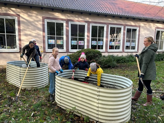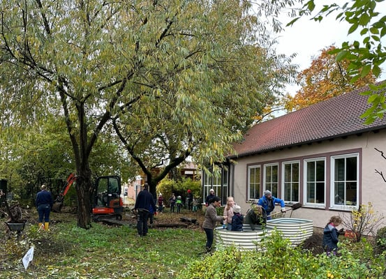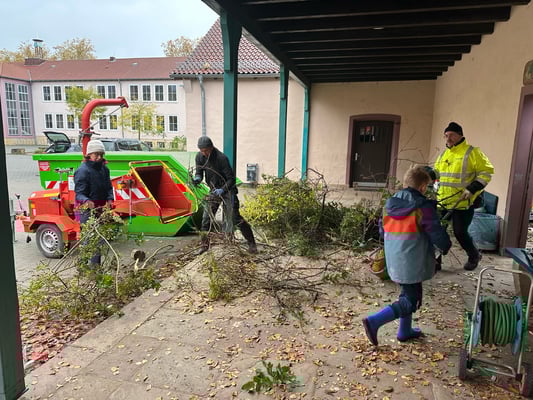 Am 11.11.2023 traf sich auf Initiative des Fördervereins eine tatkräftige Runde von Rückert-Eltern mit Kindern, um im Schulgarten aufzuräumen und diesen von giftigen oder stacheligen Pflanzen und Büschen zu befreien. Groß und Klein fassten mit an, es wurde bei wechselhaftem Novemberwetter gesägt, gebaggert, gehäckselt und gesäubert. Das Ergebnis kann sich sehen lassen: Die Basis ist geschaffen, um im Frühjahr mit dem Aufbau starten zu können. Ziel ist, den Rückert-Schulgarten ab nächstem Frühjahr für den Sachunterricht sowie als grünes Klassenzimmer nutzbar zu machen. Herzlichen Dank allen Eltern, die mitgeholfen haben und gute Erholung für den Muskelkater danach. Wir freuen uns schon auf den zweiten Streich!