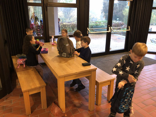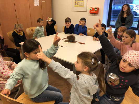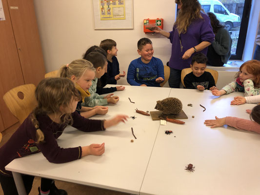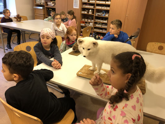 Der erste Ausflug der Klasse 1a ging mit dem Bus ins Museum am Schölerberg. Dort erlebte die Klasse mit der Museumspädagogin, wie die Tiere in Deutschland über den Winter kommen. Anhand von ausgestopften Tierpräparaten forschten die Kinder zu den Themen "Winterfell - winteraktiv, Winterruhe und Winterstarre sowie Winterschlaf. Dabei durfte auch jedes Kind einen Mehlwurm, der im Kühlschrank in der Winterstarre lag, auf die Hand nehmen und diesem beim "Aufwachen" zusehen. Zum Schluss gab es noch eine Rallye durch die neugestaltete Ausstellung des Museums.