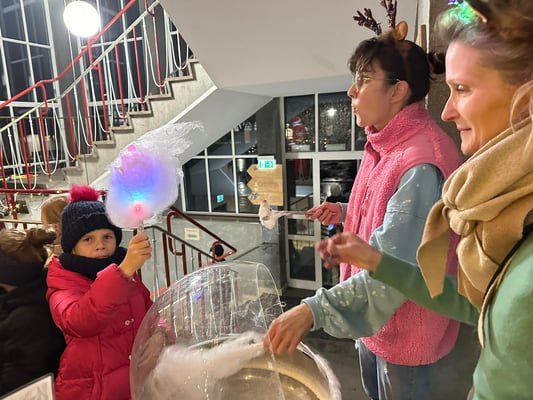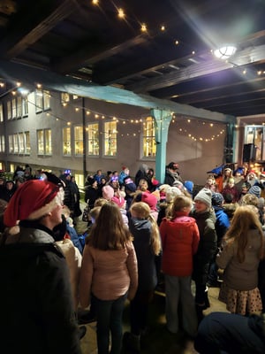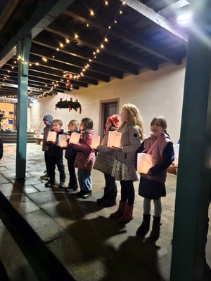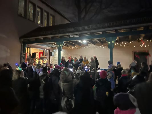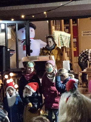 Am 20. Dezember wartete auf die Rückertschulgemeinschaft ein toller Weihnachtsmarkt mit traditionellem Weihnachtssingen auf dem Schulhof und in der Schule. Die Elternschaft und der Förderverein hatten wunderbare und liebevolle Stände vorbereitet, an denen die Gäste Weihnachtspunsch, Hot Dogs oder Zuckerwatte an leuchtenden Stäben erwerben konnten. Zuvor sangen alle Eltern und Kinder unter den Arkaden gemeinsam Weihnachtslieder, die von Frau Franke am Klavier begleitet wurden. Die ersten Klassen hatten ihren ersten Auftritt mit dem Gedicht "Denkt euch, ich habe das Christkind gesehen" und meisterten diesen ganz souverän. Die Klasse 3a führte das Gedicht "Die Weihnachtsmaus" auf und wurde ebenfalls mit viel Applaus bedacht. Als kleine Überraschung gab der Lehrerchor die Lieder "Merry Christmas everyone" und "Last Christmas" zum Besten...sicherlich nicht perfekt, aber mit viel Spaß!