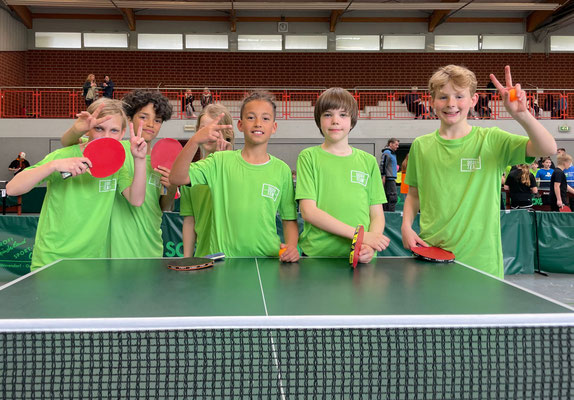 Wirklich richtig erfolgreich, so kann man unser Rückertschulteam beim Tischtennis-Turnier in Voxtrup nennen! Unter 16 Mannschaften schafften sie auf den 2. Platz des Siegertreppchens, nachdem sie im Finale knapp unterlegen waren. Zu erwähnen ist, dass sich unser Team auch gegen richtige Vereinsmannschaften durchsetzen konnte und selber gefühlt jede Schulpause nutzte, um an unseren Tischtennisplatten zu trainieren. Der Fleiß hat sich gelohnt! Wir gratulieren Luise, Melvin, Milo, Peter, Leo und Joris zum Erfolg!