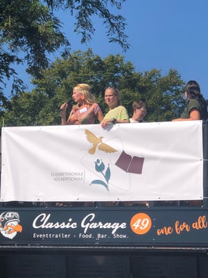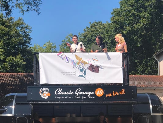 Bereits am frühen Mittwochmittag zeichnete sich ab, dass etwas Besonderes auf unserem Schulhof passieren würde: Bierzeltgarnituren und Stehtische wurden aufgebaut, verschieden Spiel- und Sportangebote vorbereitet, ein Foodtrailer sowie ein Getränkewagen rollten auf das Gelände und öffneten ihre Verkaufsfenster (DANKE an das Team von Classic Garage 49!).