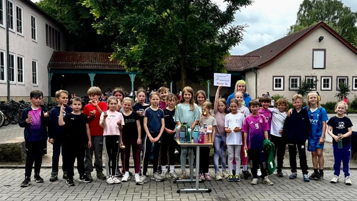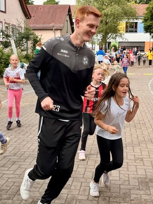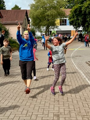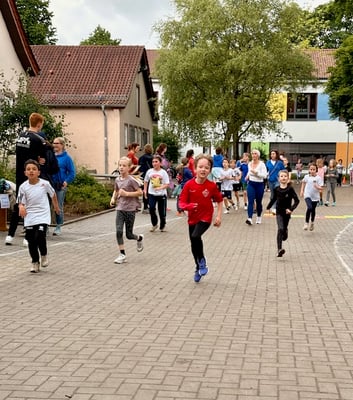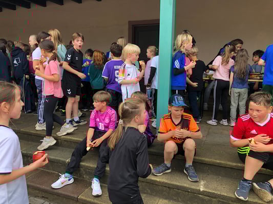 Bei guter Laufmusik wurden Jacken, Regenhosen und Gummistiefel mit Sportkleidung getauscht und es ging los - rund um den Schulhof. Nach 15 Minuten hatten die Kinder bereits das Bronze-Laufabzeichen erreicht, nach 30 Minuten das Silberabzeichen und nach 60 Minuten schließlich das Goldabzeichen! Eltern und LehrerInnen feuerten die Kinder an, indem sie mitliefen oder am Rand Mut zusprachen. Am Ende konnten die meisten Kinder zum Lied von "We are the Champions" glücklich ins Ziel laufen. Belohnt wurden alle TeilnehmerInnen mit einem leckeren Fitnessbuffet der Elternschaft.