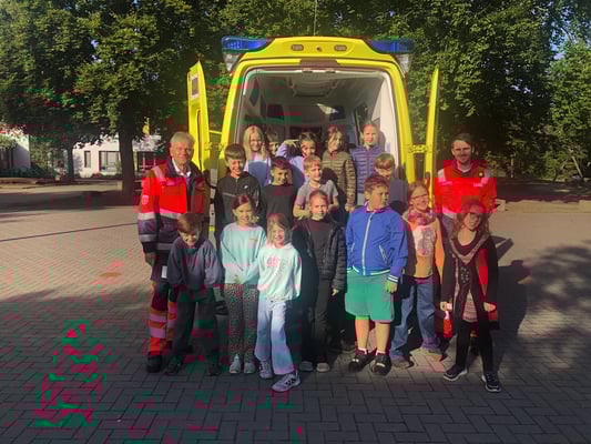 Für die dritten Klassen gab es in der letzten Woche einen 1. Hilfe Kurs der Malteser. Fachmännisch wurden die ersten Maßnahmen im Notfall besprochen und die stabile Seitenlage geprobt. Auch die Herzdruckmassage konnte an einem Buddy ausprobiert werden. Am nächsten Tag stand der Rettungswagen mit zwei Notfallsanitätern auf unserem Schulhof und die Kinder bekamen viele spannende Antworten auf ihre Fragen. Die Ausstattung des Rettungswagens wurde gesichtet und ausprobiert, inklusive Probeliegen auf der Rettungsbahre. Diese Aktion hat den SchülerInnen sehr viel Spaß gemacht und wir danken dem Förderverein für die Realisierung dieses tollen Projektes!