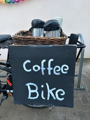 Ende letzter Woche gab es gute Neuigkeiten: der Fahrradparkplatz für Elternfahrräder vor der Turnhalle ist fertiggestellt! Der Schulelternrat und Förderverein der Rückertschule haben kurzfristig eine tolle Aktion zur Eröffnung geplant: am Montag morgen gab es für alle Eltern zum Start in den Tag einen „Coffee for free“ aus unseren geschmückten Coffee-Bikes. Zahlreiche Mütter und Väter kamen vorbei, erkundigten sich und tauschten sich bei einem Coffee to Go mit anderen Eltern aus.