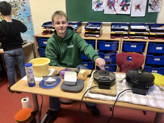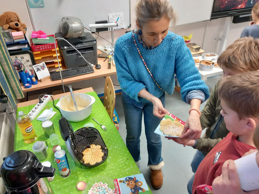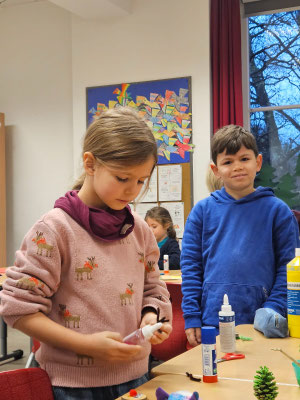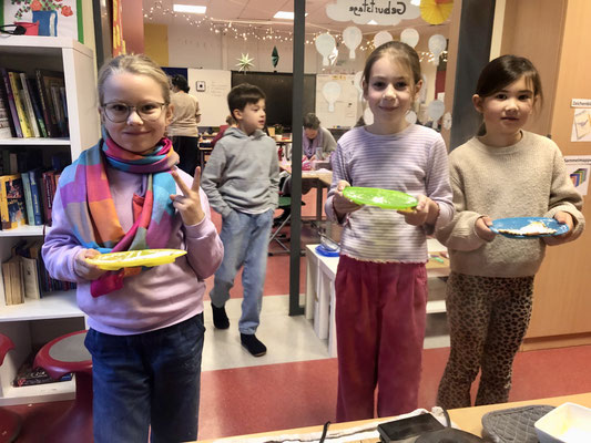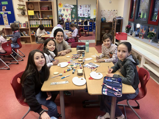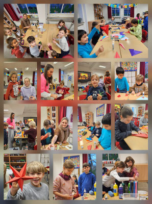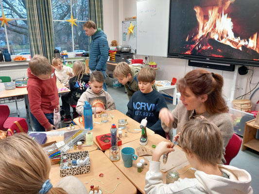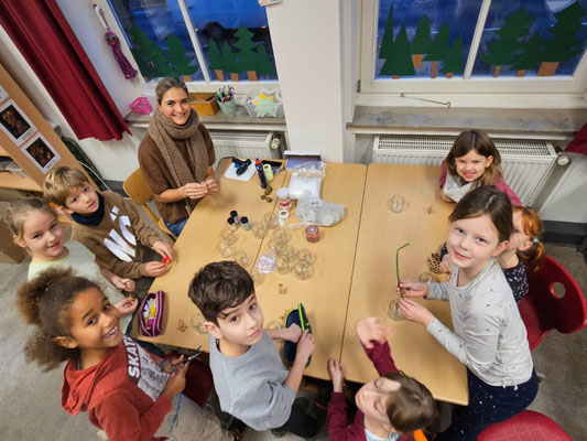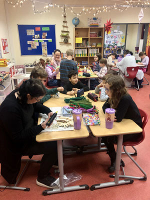 Wenn es Ende November in der Rückertschule nach Plätzchen und frisch gebackenen Waffeln duftet und in allen Räumen besinnlich gewerkelt wird, dann ist wieder Bastelvormittag in der Adventszeit. Lehrkräfte und viele fleißige Eltern haben kreative Bastelangebote vorbereitet und arbeiten mit den Kindern in kleinen Gruppen an Weihnachtsgeschenken oder Adventsschmuck- wobei: Nach arbeiten fühlt es sich gar nicht an. Es ist einer dieser beliebten gemütlichen Vormittage, die unsere Rückertkinder so sehr genießen und der immer wieder richtig gut ankommt!
