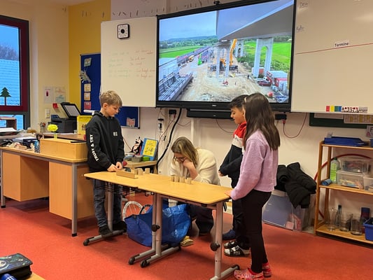 Im Rahmen des Sachunterrichts zum Thema "Brücken" besuchte Frau Kollberg heute die 3a, um aus ihrer Erfahrung als Bauinginieurin zum Thema Brückenbau zu referieren. Mit handlungsorientierten Experimenten regte sie die Kinder an, eine stabiles und tragfähiges Brückenmodell der Störbrücke zu bauen. Am Bau der Originalbrücke war sie selber beteiligt, wie sie den Kindern anhand einer Bilder-Power Point Präsentation anschaulich demonstrierte. Wir danken für eine lehrreiche Stunde!